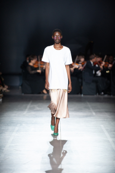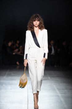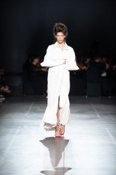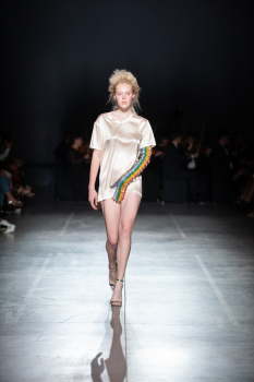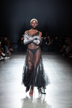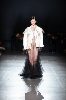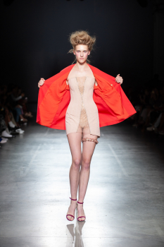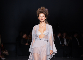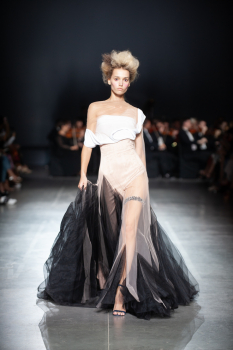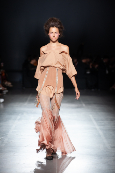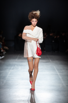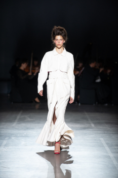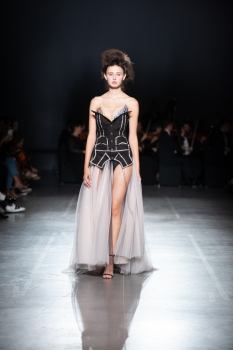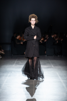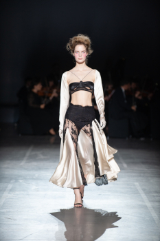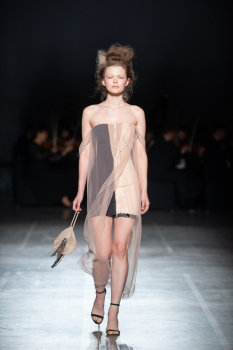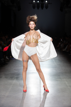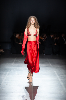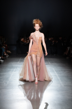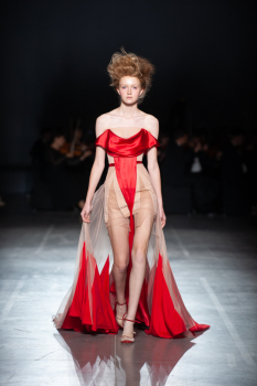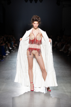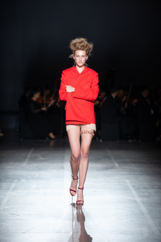 Начало показа ознаменовала Симфония №5 Бетховена в исполнении симфонического оркестра. Модели дефилировали в корсетах Fireworks с ручной вышивкой и экстремальными вырезами, шифоновых костюмах, сияющих перчатках, шелковых юбках со вставками из гипюра, тренчкотах из экокожи, бюстгальтерах и трусах, расшитых камнями.