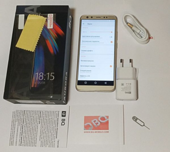 Смартфон BQ Aurora по российским меркам стоит достаточно недешево, но комплектация у него вполне стандартная. В коробке, увы, не нашлось наушников, хотя разъем под них у аппарата имеется.