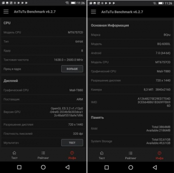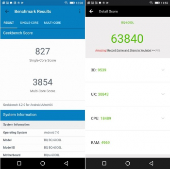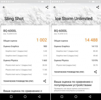 В играх процессор греется едва заметно, что тоже способствует повышенной производительности. Результаты тестирования в бенчмарках вы можете видеть на скриншотах, и следует обратить особое внимание на баллы в игровом тесте 3D Mark. Для смартфона, который стоит 15 000 рублей, это очень высокий показатель.