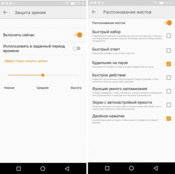 Однако даже предложенных настроек обычному пользователю хватит с головой: есть даже программа выбора цветовой температуры, приложение для защиты зрения (меняет настройки яркости и подсветки), поддержка жестов и даже дополнительная виртуальная кнопка с самыми часто используемыми функциями.
