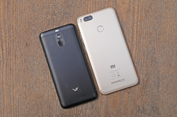 Слева – Vertex Impress Nero с 5,5-дюймовым экраном формата 18:9, справа – 5,5-дюймовый Xiaomi Mi A1 с 5,5-дюймовым экраном 16:9. Xiaomi заметно длиннее, шире и массивнее.
