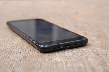 …а на нижней – порт MicroUSB (посередке) и пара перфорированных областей. Под одной находится мультимединый динамик (орет более чем достойно, и без хрипов), под другой – микрофон. Если кто не в курсе, так довольно часто делают в смартфонах. Прорезей две, и многие думают, что динамиков тоже два, но самом деле это просто для симметрии. Впрочем, повторимся: для обеспечения насыщенного звука Vertex Impress Nero достаточно и одного динамика.