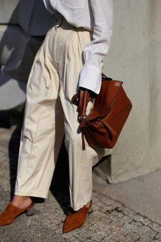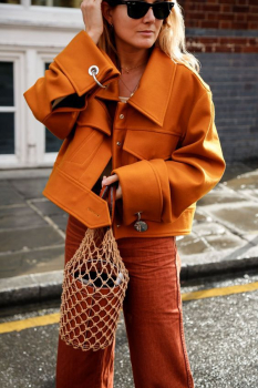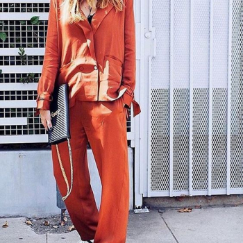 - Total-look. Если ты не боишься выглядеть слишком ярко летом, попробуй носить терракотовый цвет в монохроме: тренч, брюки и сумочка — идеальная комбинация на лето в одном образе.