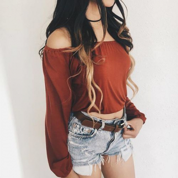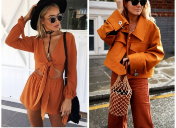 - Комбинация. Носи терракотовый цвет в комбинации: топ + шорты или юбка. Особенно ярко выглядит такая комбинация на загорелом теле и с выгорелыми волосами.
