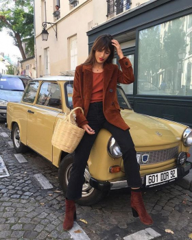 - Пиджак. Микс коричневого и красного выглядит на пиджаке очень лаконично и интересно, при этом создавая яркий и стильный тандем в образе. Носи терракотовый пиджак с темными брюками и нейтрального цвета блузой или футболкой. Помни, яркий акцент должен быть только на пиджаке.