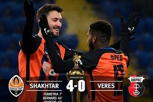 Шахтер не столкнулся с большими трудностями в матче с Вересом в 1/4 финала Кубка Украины.