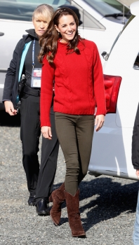 Наряду с роскошными платьями в официальной поездке в Канаду Кейт Мидлтон носила джинсы Zara. В одном из образов герцогиня смиксовала их с белой блузой с бантом и блейзером. В другом — с вязаным красным свитером.
