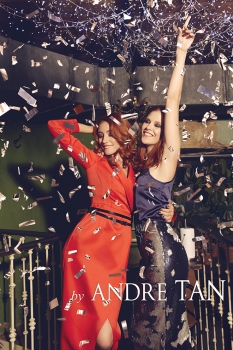 Как утверждает сам модельер Андре Тан, Новый год 2018 — время золотистых платьев, юбок в паетках, бархатных элементов, шика и блеска. Это отголосок безумных вечеринок в стиле «Гэтсби»: массивные украшения, повязки на глаза, плавность в каждом движении. Все эти элементы и атрибуты дизайнер Андре Тан соединил в своей новогодней коллекции «Лёд и пламя».