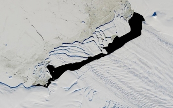 NASA опубликовало снимок гигантского айсберга, который в сентябре прошлого года откололся от Pine Island в Исландии. На снимке запечатлена гигантская ледяная глыба высотой