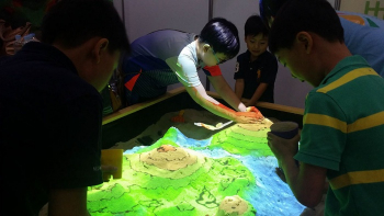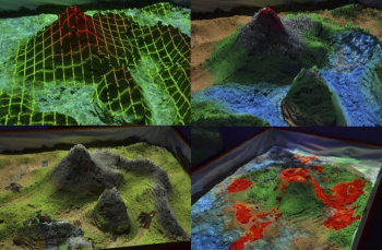 Благодаря неровной поверхности песка, проецируемые картинки обретают объем, а руками дети управляют происходящими процессами, — например, они могут создать гору и тут же превратить ее в пылающий вулкан. С помощью «Интерактивной песочницы» малыши легко осваивают азы счета и письма, знакомятся с геофизическими процессами, которые происходят внутри и на поверхности нашей планеты, совершенствуют коммуникативные навыки и развивают сенсорное восприятие.