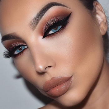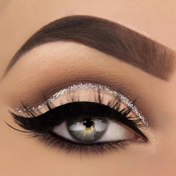 - Макияж с блестками. Не зависимо от цвета глаз, выбирай на Новый год 2019 макияж с блестками. Попробуй нанести небольшое количество блестящих теней на средину верхнего века. Или попробуй также растушевать глиттер по всему веку. Интересно будут выглядеть глиттерные стрелки в макияже глаз. Для более эффектного макияжа на Новый год 2019 выбирай помады или блески для губ с эффектом мерцания.
