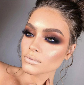 - Smoky-eyes. Если ты обладательница красивых и больших глаз, тогда попробуй создать новогодний макияж с акцентом на глаза. Но запомни, если ты решила создать макияж с акцентом на глаза, тогда твои губы должны быть максимально натурального оттенка: используй нежно-розовые или бежевые помады. Самый лучший вариант для макияжа глаз — smoky-eyes. И не обязательно ограничиваться только темными оттенками, используй как светлые, так и пастельные тона.