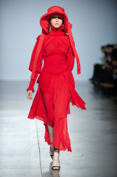 Дизайнер Яна Червинская расширяет эту идею, представляя массивные пуховики и шубы из искусственного меха, которые, в ее понимании, приобретают новое значение и являются не только функциональной верхней одеждой, но и своеобразным «домом» для тела и сознания. В то время как романтизм женственных платьев напоминает о нежном внутреннем, которое скрывается за броней. Насыщенная цветовая палитра коллекции выступает в качестве предупреждающего сигнала: «не смотри на меня, не трогай меня, не говори со мной».