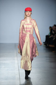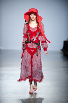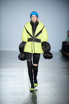 Верхняя одежда в коллекции – это размышления дизайнера на тему униформы. Яна Червинская представляет дутые жилетки на завязках, напоминающие надувные спасательные жилеты, и объемные рыбацкие панамы, заканчивая скульптурным, почти театральным наслоением.