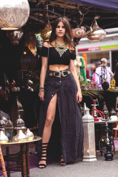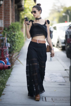 На первый взгляд может показаться, что длинная юбка — слишком официозно. Обычно длина макси уместна на красных дорожках и вечерних мероприятиях. Но у стритстайла свои правила. Надевай повседневную длинную юбку с майкой, кроп-топом, футболкой, блузой с баской или с открытыми плечами.
