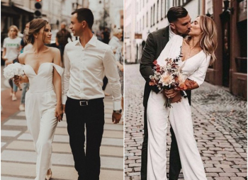Свадебное платье — это, конечно, красиво, привычно и традиционно, но если ваша роспись припадает на холодное время года, то в платье в пол особо не походишь. К тому же, в последнее время огромной популярностью пользуются скромные свадьбы, после которых молодожены уезжают на карете в теплый закат солнца на Бали, в Таиланд или Египта. Поэтому заморачиваться по поводу платья совсем не хочется.