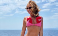Актриса выбрала для пляжного отдыха откровенный наряд и показала подтянутые формы в прыжке.