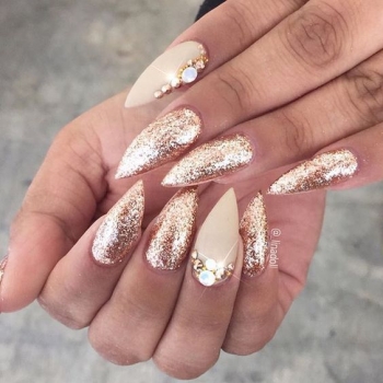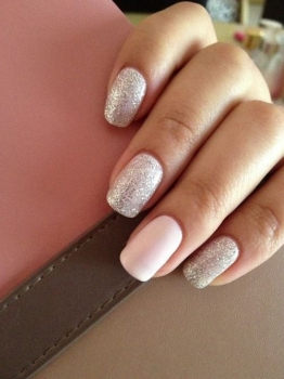 Сегодня нейл-мастера стараются придерживаться в маникюре с блестками некую сдержанность. Для такого дизайна лучше использовать немного блесток, достаточно всего лишь украсить пару ноготков. Для идеального маникюра подбери всего лишь один базовый оттенок, потому что два будут выглядеть нелепо на твоих ноготках. Попробуй также смешивать разные техники в маникюре с блестками. А вот идеальным оттенком для маникюра с блестками послужит нежно-бежевый цвет либо же темные оттенки лака.