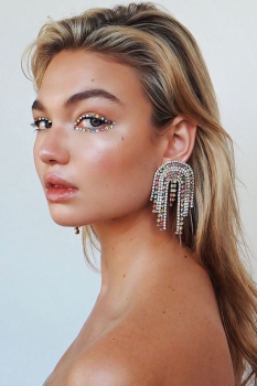 • Еще одним необычным вариантом макияжа для новогодней ночи является глиттер. Использование блесток гарантировано выделит тебя среди других девушек на празднике. Ты можешь использовать как крупные камушки, так и рассыпчатые блестки.