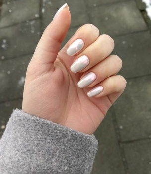 Сделай маникюр с бликами. Если ты желаешь визуально удлинить ногти, стоит избегать матовых покрытий. Обрати внимание на глянец и перламутр, маникюр с бликами, благодаря чему визуально «вытягивается» пластина.