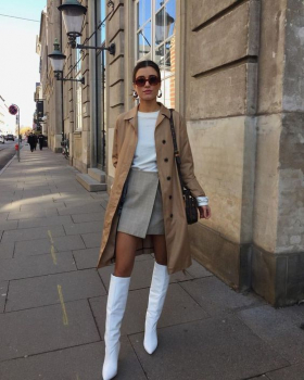 • Тренч. С наступлением теплой погоды твоим лучшим другом должен стать бежевый тренч. Не стоит забывать о классике: длинный бежевый тренч на пуговицах или на поясе станет твоим must-have нарядом этой весной.