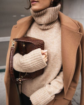 • Водолазка. В прохладную погоду весной тебе не обойтись без уютного свитера. В этом сезоне свой гардероб пополни oversize водолазкой бежевого цвета. Такой свитер хорошо смотрится в комплекте с одеждой пастельных оттенков. Сочетай бежевую водолазку с темными вариантами охристого и коричневого, а также с оранжевым и темно-зеленым.