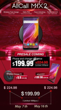 При всем этом стоит новый AllCall MIX2 всего 190 долларов США на время приема предзаказов, и в этот же период времени можно заказать еще беспроводную док-станцию AllCall F1 всего за $10, и все это с бесплатной доставкой по России. Оформить заказ со скидкой можно по этой ссылке, а на Ютубе уже появилось видео с распаковкой смартфона – там показано, что поставляется в комплекте с ним.