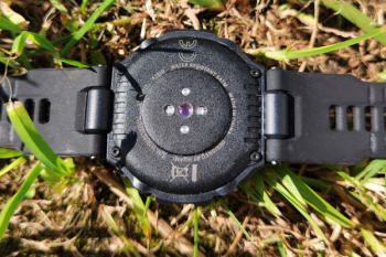 Сенсорный круглый экран имеет диаметр 1,3 дюйма и разрешение 360×360 точек, мелкие шрифты выглядят довольно гладко. Использующаяся AMOLED-матрица не только гарантирует сочные цвета и глубокий черный, но также экономит заряд батареи и поддерживает функцию Always on Display. Часы умеют включать экран при поднятии руки, а уровень яркости подсветки регулируется по датчику с максимумом в 500 нит. Этого вполне достаточно, чтобы в ясный день вся информация была хорошо различима. Дисплей закрыт защитным стеклом Gorilla Glass 3 с олеофобным покрытием. Для удобства, управление дублируется четырьмя механическими клавишами: «Выбор», «Назад», «Вверх» и «Вниз». Это будет удобно зимой, когда надеты перчатки, или во время водных процедур. Кнопки подписаны, и имеют небольшой ход с тихим щелчком. На верхнюю правую можно назначить доступ к любой функции (по умолчанию это тренировки).
