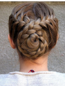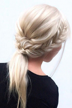 - Прическа с плетением. Не менее выгодной прической для тонких волос станут различные плетения. Это может быть коса вокруг головы, взъерошенная коса, плавно переходящая в пучок или хвост. С помощью плетений твои волосы будет выглядеть объемней, а главное прическа продержится долго.