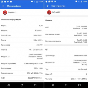— процессор: MediaTek MT6739WA, 4 ядра, 1,3 ГГц;