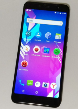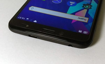 Спереди у BQ Jumbo имеется вытянутый экран с довольно широкими рамками сверху и снизу. Тем не менее, сенсорных кнопок управления у него нет – их заменили на виртуальные, хотя места под них снизу предостаточно, и в итоге они занимают значительную часть экрана. Но об этом позже. Также на лицевой панели есть фотокамера со вспышкой на основе одного светодиода, сенсоры и разговорный динамик. Нижний торец отдан под динамик и микрофон, а сверху расположены разъем для зарядки и вход под наушники. Кнопки питания и громкости помещены на правый боковой торец. Лоток под SIM-карты внесен на левый торец, здесь он гибридный – либо две SIM-карты, либо одна SIM и microSD.
