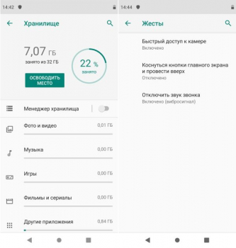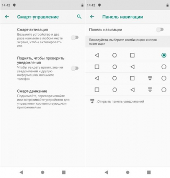 В системе есть определенный тюнинг – в частности, смартфон умеет реагировать на то, что его берут в руку, и включать дисплей, плюс у него есть система управления жестами. Помимо этого, можно менять очередность расположения сенсорных кнопок управления, что повышает общее удобство пользования гаджетом.