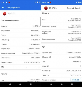 — процессор: UniSoc SC9863A, 1,6 ГГц, 8 ядер;