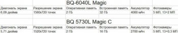 Magic S – не единственный актуальный представитель линейки смартфонов BQ Magic. Она состоит из трех моделей, в том числе BQ-6040L Magic и BQ-5730L Magic С. Это более доступные модели в сравнении с Magic S (BQ-6040L стоит 8000 рублей, BQ-5730L – 7000 рублей. Их сравнительные характеристики приведены в таблице. Как можно увидеть, снижение цены, даже с учетом более крупного дисплея у Magic, было достигнуто путем уменьшения разрешения экрана и фотокамер, а также за счет меньшего объема оперативной памяти.