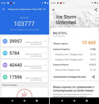 В AnTuTu смартфон набрал практически 104 000 баллов – для устройства за 8500 рублей результат более чем отличный. В 3DMark с пакетом Ice Storm Unlimited результат составил почти 10 500 баллов. Можно признать Magic S вполне игровым смартфоном – многие современные игры он потянет без особых проблем. Единственный нюанс – во время проверки производительности ощущался небольшой нагрев в районе системной платы и аккумулятора.