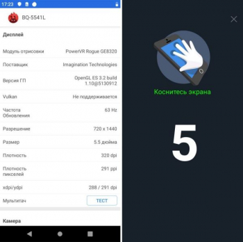 Сенсорный слой определяет пять одновременных касаний, срабатывает хорошо по всей площади экрана. Режима управления одной рукой нет, но это уже пережиток прошлого.