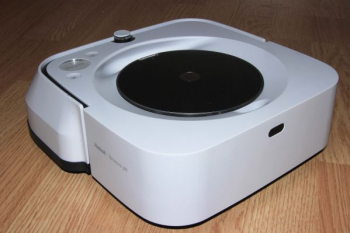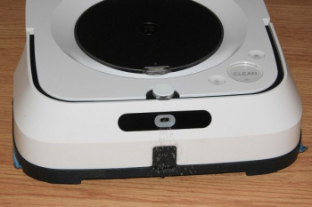 Передвигается робот на двух колесах с небольшим ходом подвески, чего, впрочем, хватает для преодоления порогов, а на ковры ему влезать и не положено. Пара контактов расположена сзади, а по периметру находятся датчики, контролирующие перепады высоты, чтобы Braava не свалился с лестницы. Вместо всасывающего отверстия, снизу находится крепление для установки салфеток, а специальный датчик позволяет роботу определить, какая именно установлена насадка, и выбрать соответствующую программу.