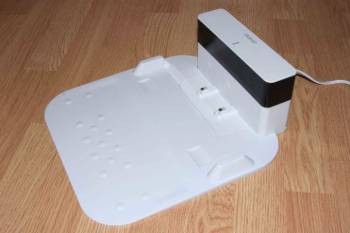 База у полотера весьма легкая и компактная, поэтому, несмотря на наличие резиновых ножек, может иногда сдвигаться во время парковки робота. Поддон не позволит влажной салфетки испортить ламинат, а отсоединяемая конструкция удобна для очистки.