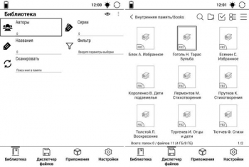 Второй экран – это классический диспетчер файлов, как на любом компьютере или Android-смартфоне, позволяет управлять любыми имеющимися в памяти папками или документами, включая файлы с книгами. Вкладка «Приложения» открывает доступ к калькулятору, часам и словарю, но, на наш взгляд, пользоваться ими большинство владельцев Caesar IV будут крайне редко, поскольку это в первую очередь ридер.
