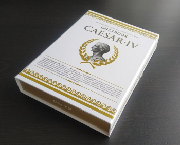 Caesar IV продается в коробке белого цвета из очень прочного многослойного картона, верхняя крышка которой имеет удобное магнитное крепление. Она украшена различными орнаментами, изображением Юлия Цезаря и его краткой биографией – все это вынесено на ее верхнюю часть.