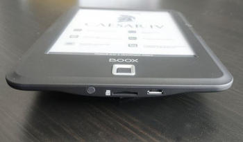 Интерфейсы ридера вынесены на нижний торец корпуса – здесь есть и порт зарядки, и слот под карты microSD. Верхняя грань корпуса отдана под кнопку включения. Задняя панель книги снабжена лишь технической информацией.