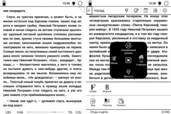 Встроенные программы для чтения различаются тем, что, к примеру, OReader имеет больше настроек, а NeoReader позволяет запускать словарь в оконном режиме. Кроме того, он предназначен для работы с PDF, DjVu и файлами комиксов. Так или иначе, обе программы очень достойные и функциональные, и обе они поддерживают все современные форматы книг и документов, в том числе запакованных в архив. В обеих программах пользователю доступен широкий набор функций, среди которых: поддержка закладок, поиск по тексту, выбор шрифта, быстрое изменение масштаба текста, переход на нужную страницу и многое другое.
