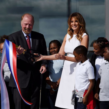 Первая леди приняла участие в церемонии открытия памятника вместе с учениками школы Amidon-Bowen Elementary School. Она собственноручно разрезала ленточку, а также осмотрела отреставрированное здание и поднялась на смотровую площадку.