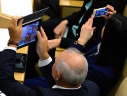 Заместитель председателя думского комитета по безопасности и противодействию коррупции Дмитрий Горовцов («Справедливая Россия») планирует в январе внести в Госдуму проект постановления о полном запрете для депутатов использовать телефоны и какие-либо гаджеты на