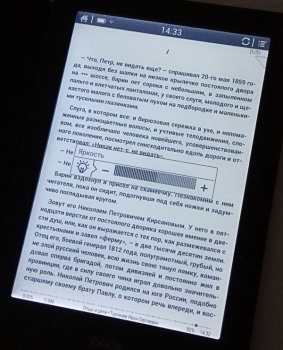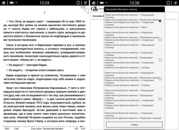 Oreader умеет осуществлять поиск по словам, оглавлению и номерам страниц, плюс у этой программы есть полноэкранный режим, в котором на дисплей выводится только текст книги. Приятный бонус – возможность регулировки яркости подсветки Moon Light прямо из интерфейса приложения. Помимо всего этого, существует возможность настройки действий по нажатию боковых кнопок, но их можно не использовать и листать страницы путем касания к экрану.
