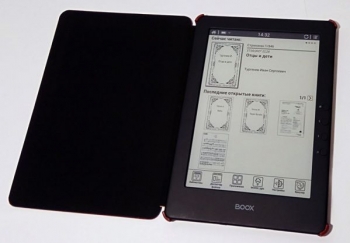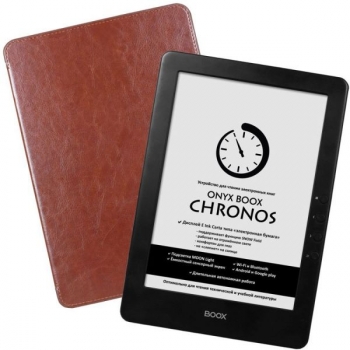 Onyx BOOX Chronos поставляется с прочным чехлом-обложкой, надежно удерживающем ридер при помощи четырех лапок по углам корпуса. Верхняя крышка чехла легко открывается и откидывается и чтению совершенно не препятствует.