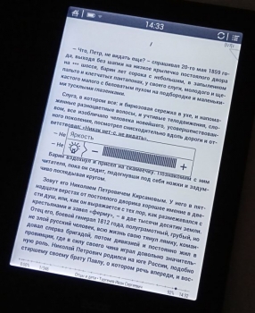 Работает Snow Field как с подсветкой, так и без нее, и поскольку в основе экрана лежат электронные чернила, он, в отличие от LCD-панелей планшетов, не слепнет и остается читаемым на солнце. Читать книгу Onyx BOOX Chronos очень комфортно – все видно даже без подсветки.