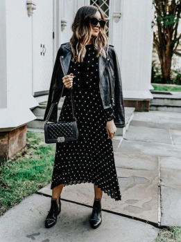 • Надень легкое платье. Беспроигрышный вариант на 8 марта — легкое, женственное платье. При выборе такого платья обрати внимание на принт. В моде цветочные мотивы, геометрические фигуры, горошек или полоска. А от анималистичного принта и кричащих рисунков на платье стоит отказаться. Если на улице будет прохладная погода, надевай на платье кардиган, блейзер или черную косуху.
