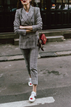• Выбирай брючной костюм. Если ты обожаешь классику и не представляешь свою жизнь без модной пары брюк, твой вариант на 8 марта — брючной костюм. Обрати внимание на нейтральные или пастельные оттенки в костюме с брюками: пыльно-розовый, красный, белый или темно-синий.