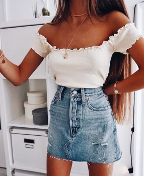 Джинсовая юбка хорошо сочетается с любыми элементами гардероба. Стилисты рекомендуют летом сочетать юбку из денима с рубашками, блузами, топами и футболками.